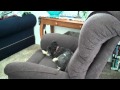 4/15/12 Katie the cute schnoodle mix has just arrived. We are evaluating her and I can say that she is a very friendly girl to everyone and doesn't mind other dogs at all. She rides nice in a car and loves to look out the window or sit in your lap! She loves to run after a ball but doesn't bring it back. I take her out regularly and she does her business outside, so far no accidents. She slept in her crate last night, she made a fuss for about 15 min then settled down for the night. She is matted and has a quarter size hot spot that is healing up nicely, probably due to a twisted mat that pulled the hair away from the skin. Poodles hair grows so they must be taken to the groomer periodically to keep it from matting. The poor dear had several ticks on her and we spend the first hour pulling them all off her and cleaning her up. She is feeling much better. She came from a Southern shelter where they are housed outside. I am sure with the weather and bugs she is glad to be out of there. She is very thin so we will be feeding her well to pick up a few lbs. Katie is a wonderful companion dog.